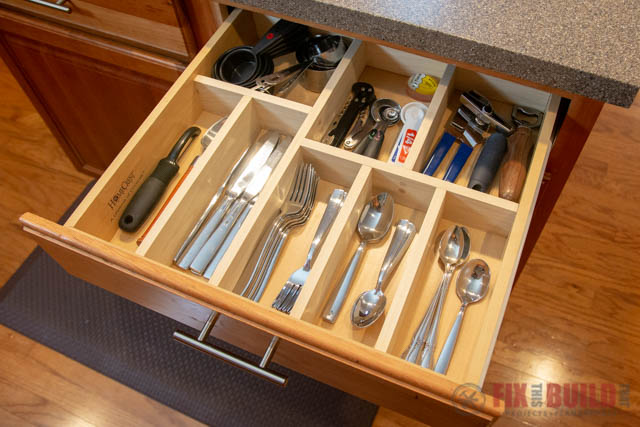 Messy drawers driving you crazy? Custom dividers are the answer. Measure your drawer, cut scraps to fit, and create a grid system with wood glue. This works brilliantly for utensil drawers, jewelry boxes, or that junk drawer everyone pretends they don’t have.