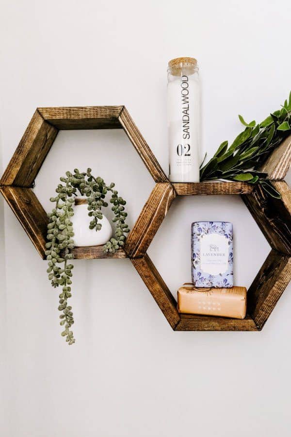 Hexagon shelves look complicated, but they’re just six pieces cut at 30-degree angles. Once you nail the first one, you can make a whole honeycomb wall. These are seriously Instagram-worthy and give you major design cred.