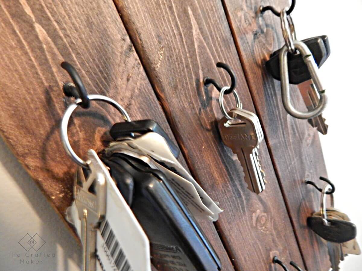 Stop losing your keys. Seriously. Sand a small piece of wood, screw in some hooks, add mounting hardware, and hang it by your door. You can keep it simple or jazz it up with stain, paint, or wood-burning designs. Your future self will thank you every single morning.