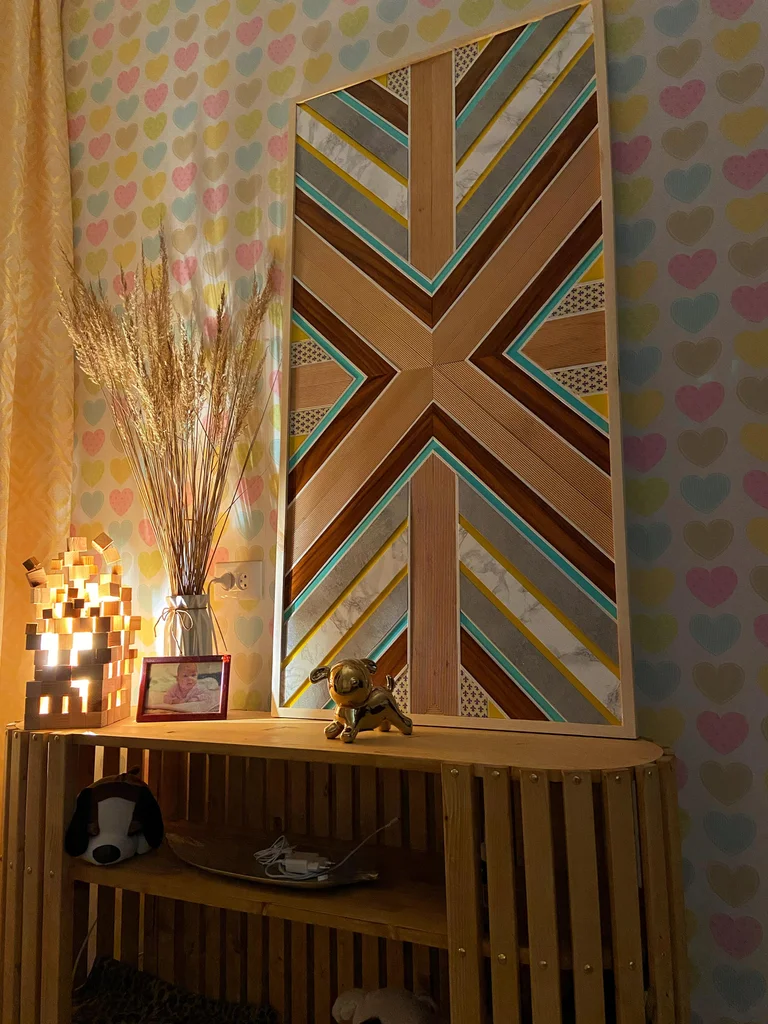 This is where weird shapes shine. Arrange scraps into geometric patterns, triangles, chevrons—whatever speaks to you. Glue them to a backing board, add some color, and you’ve created original wall art. No two pieces ever look the same, which is the whole point.