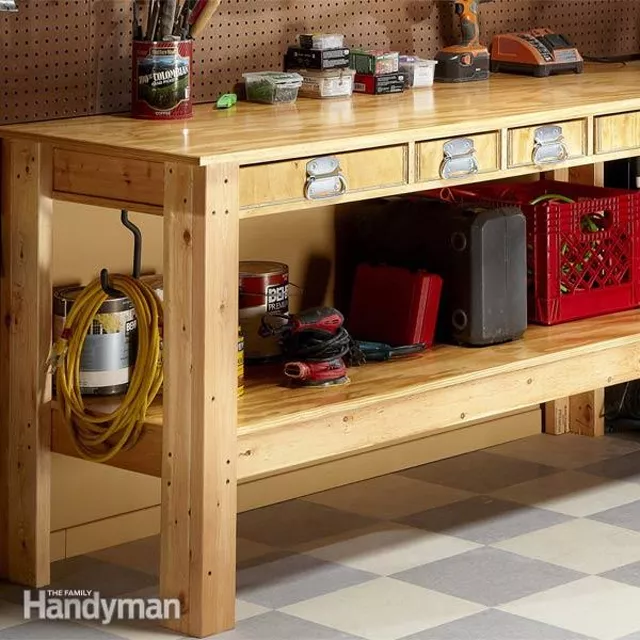 With this Family Handyman workbench idea, you can construct a basic but robust table for less than $100 in only a few hours. To make this basic workbench, follow the user comments, videos, material list, and directions.