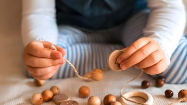 Join jute twine with wooden beads. Give some beads a darker stain than others. Hang it from a mantel, a wall hook, or a mirror. That’s the entire project, and to be honest? It looks amazing. For a layered, carefully chosen appearance, change the stain colors and bead sizes. This is one of the easiest and most visually striking small wood crafts on this list.