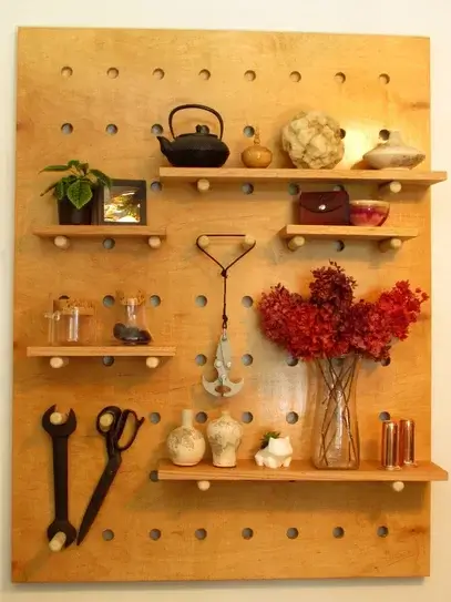 A pegboard is perfect for organizing tools, kitchen items, or even jewelry. Use a wooden board, drill holes evenly, and insert dowels as pegs. Paint or stain it for a finished look.