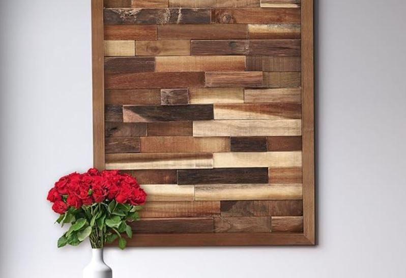 A rustic wood collage allows for a creative mix of textures, colors, and shapes. Combine various reclaimed wood pieces—raw, stained, and distressed—to create an eclectic and personalized art piece that adds warmth and character to your space.
